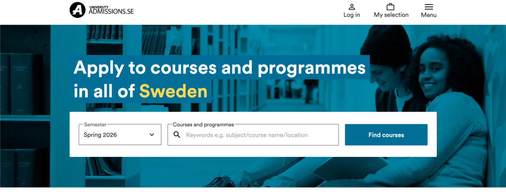 Apply through Sweden’s central application portal. Create your account on the portal. You can choose up to four programs and rank them based on priority. You will find all information in this portal, including the key dates and what to prepare for your application.
